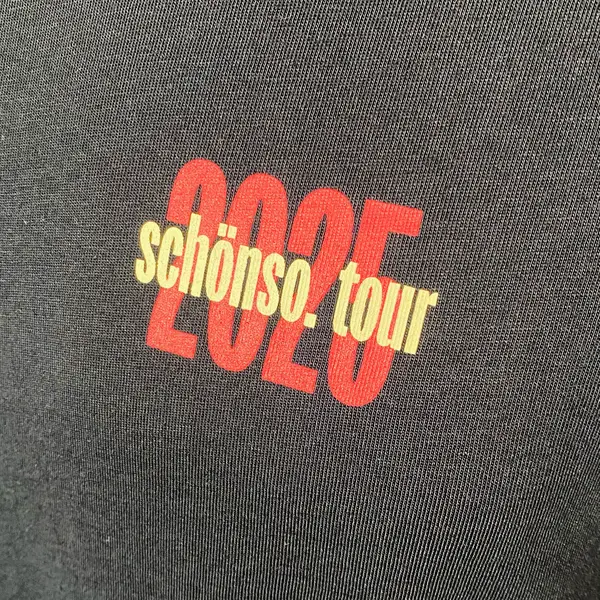 Das neue SCHÖNSO – Tourshirt 2025 mit Druck auf der Brust, in normaler Passform.